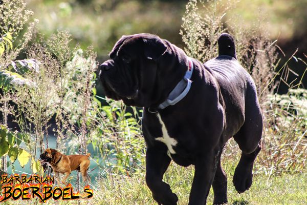 Beyond his impressive build, Moses possesses an outstanding temperament — friendly, reliable, and endlessly energetic, making him the perfect companion for adventures or long hikes. His pedigree is equally impressive, tracing back to some of the highest-appraised Boerboels in the world, including Barbarian Konan (91.9%), Blitzkreig Dexter (90%), Balkan Marko (95.9%), and Groenburg Rambo (92%).
