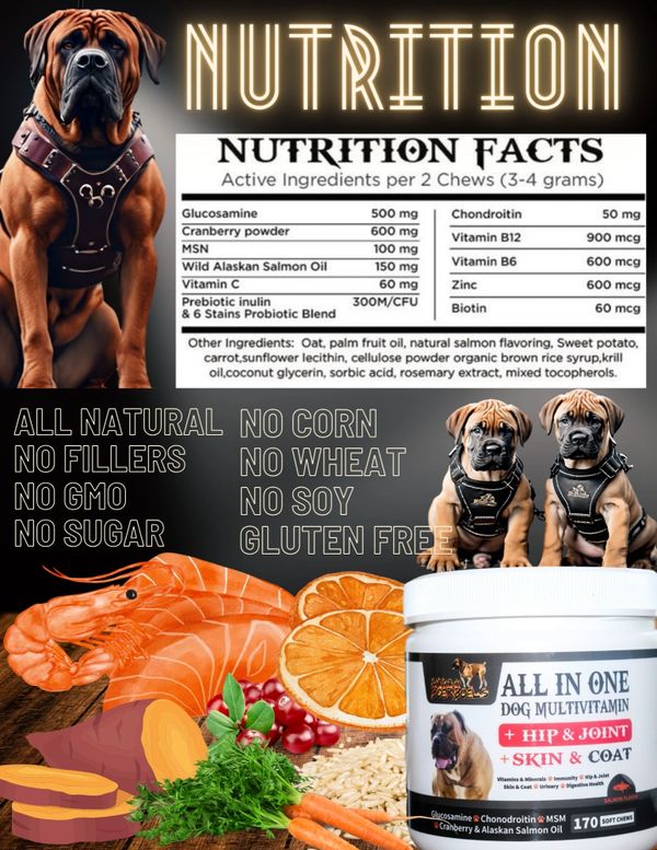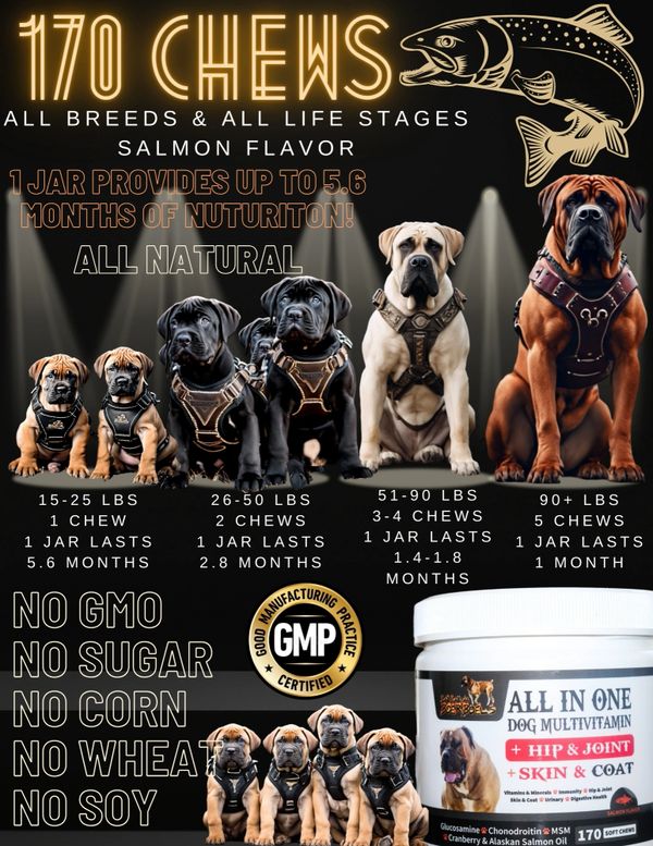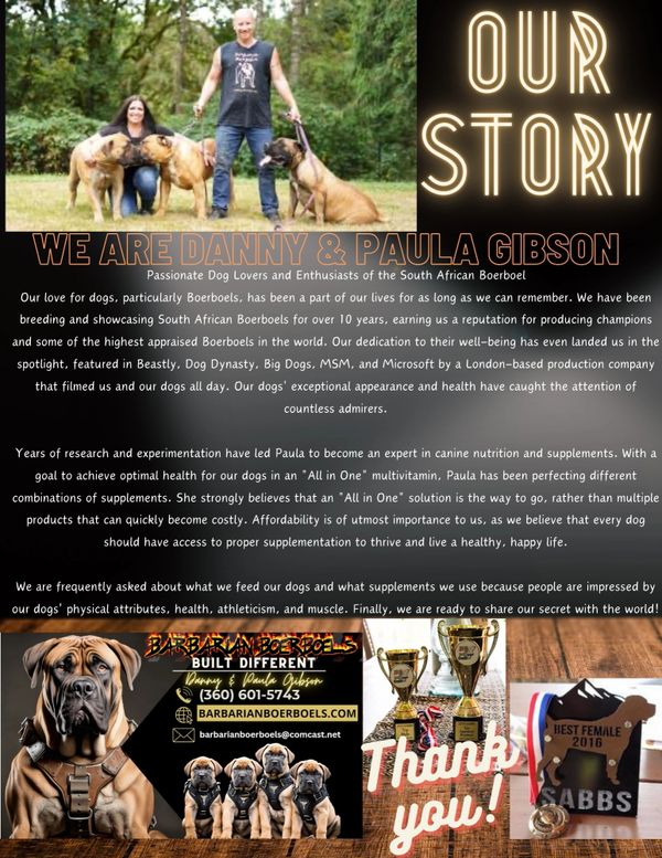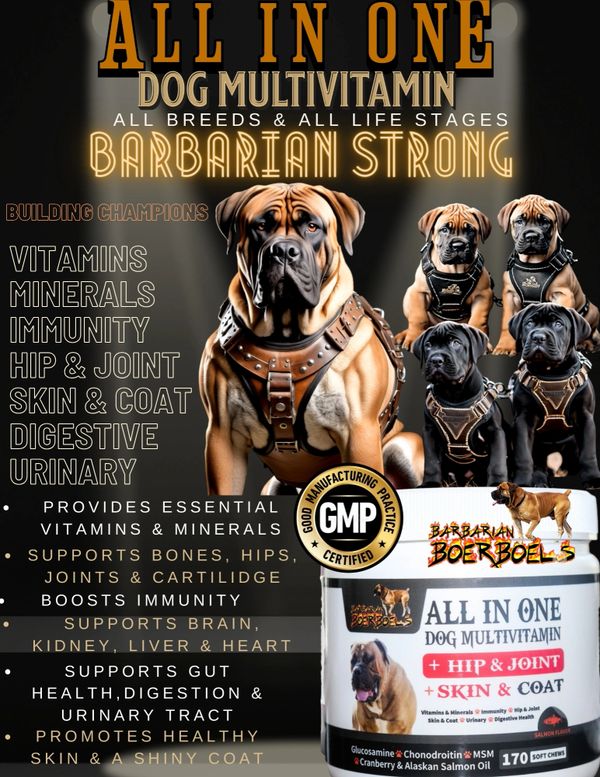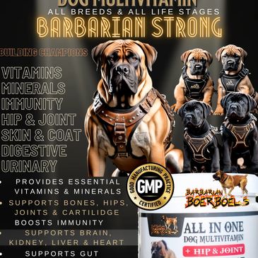 Barbarian family: These NuVet supplements are the most important thing you can do to ensure your Barbarian Boerboel a healthy life. At Barbarian Boerboels all of our dogs from puppy to old age are taking these supplements and the results are obvious. Healthy boerboels with strong bones, joints, muscles and ligaments with shiny beautiful coats.